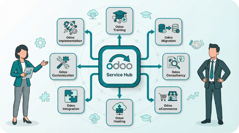 Odoo implementation service offers integration, customization, training, and support to optimize business operations and productivity and ensure a successful ERP deployment.