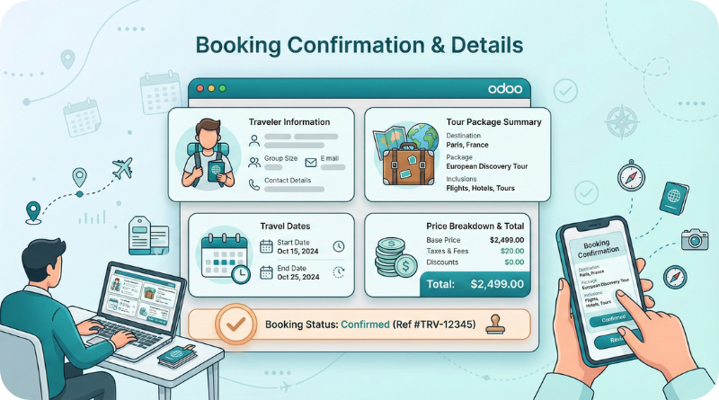 They are booking management for travel agencies. It automates reservations, tracks availability, and handles payments. This system of booking processes eliminates the risk of overbooking or scheduling conflicts. With Odoo, agencies can focus on delivering exceptional service while operations run behind the scenes.